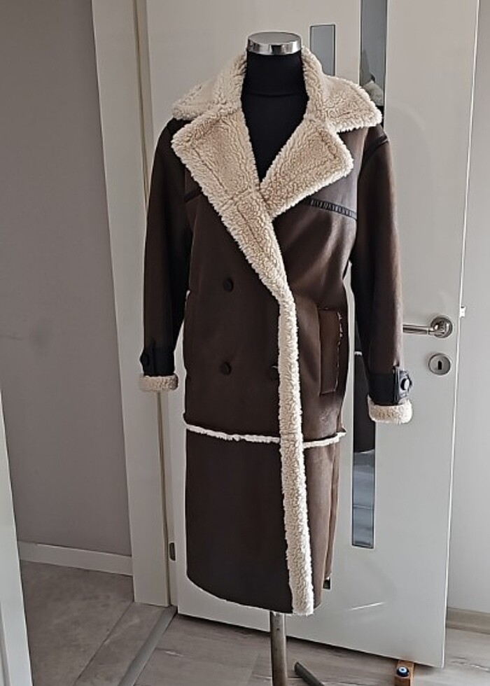 Bershka uzun ici kürklü uzun kaban çok taze bir ceket sadece iki kere giyildi hiç bir kusur kusuru yoktur kahverengi renktir