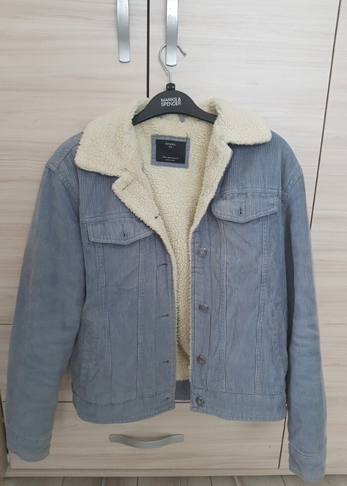 Mavi kadife fitilli kürklü bershka ceket. İyi durumda. Sıcak tutuyor. Fakat kilo aldım ve satıyorum