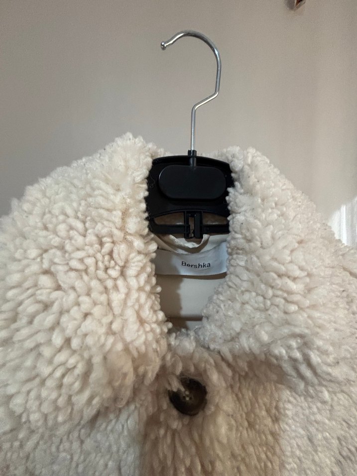 Bershka markalı, kürk detaylı, beyaz midi mont. Notched lapel yakalı, strappy kollu, rahat ve şık tasarım günlük kullanıma uygun.