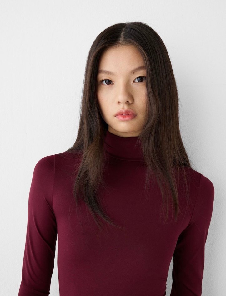 Bershka Kadın Bordo Yüksek Yakalı İnce Bluz