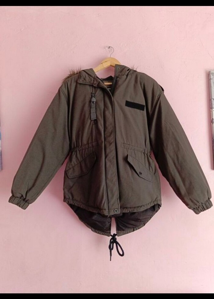 Kışlık kalın mont.orjinal ürün 3 kez giyildi kışlık kalın mont hurcda durmakdan kollarda çok hafif karışıklık olmus. mağazadan alırken cebinin bir düğmesi düşmüş fark etmedim başka bir sıkıntısı yoktur. s-m-l bedene rahat olur. kalın bir mont karda kışta cok guzel korur. boy:77 en:50 kol uzunluğu:57 cm dır