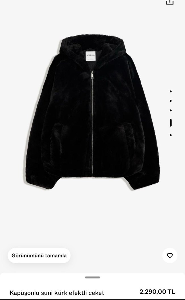 Siyah kapüşonlu kadın peluş ceket, kürk detaylı ve bol kesimdir. Uzun kollu, midi boy ve sokak stiline uygun rahat bir tasarımdır.