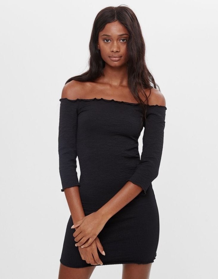 Bershka Kadın Siyah Yakasız Kısa Elbise
