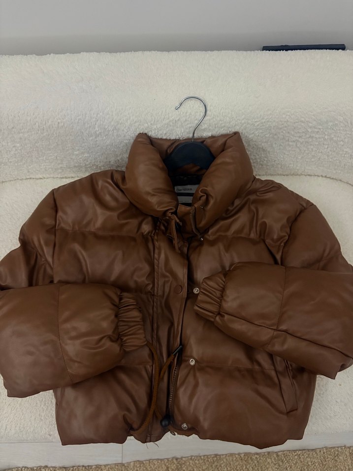 Bershka Kahverengi Deri Kadın Mont