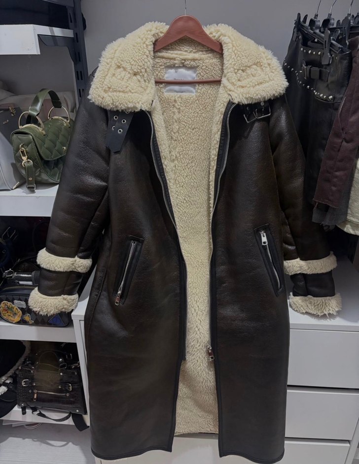 Bershka Kahverengi Kadın Deri Kürklü Biker Kaban