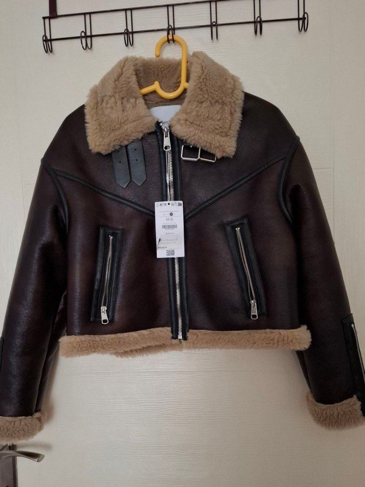 Bershka Kahverengi Kürklü Deri Kadın Ceket M Beden