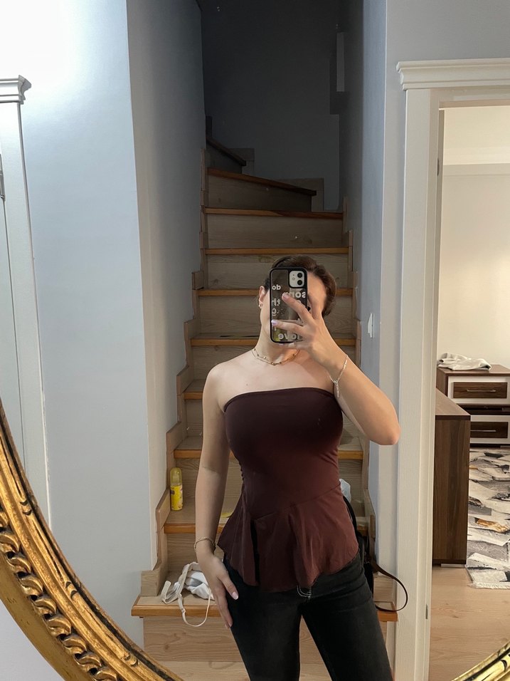 Bershka Kahverengi Straplez Bluz