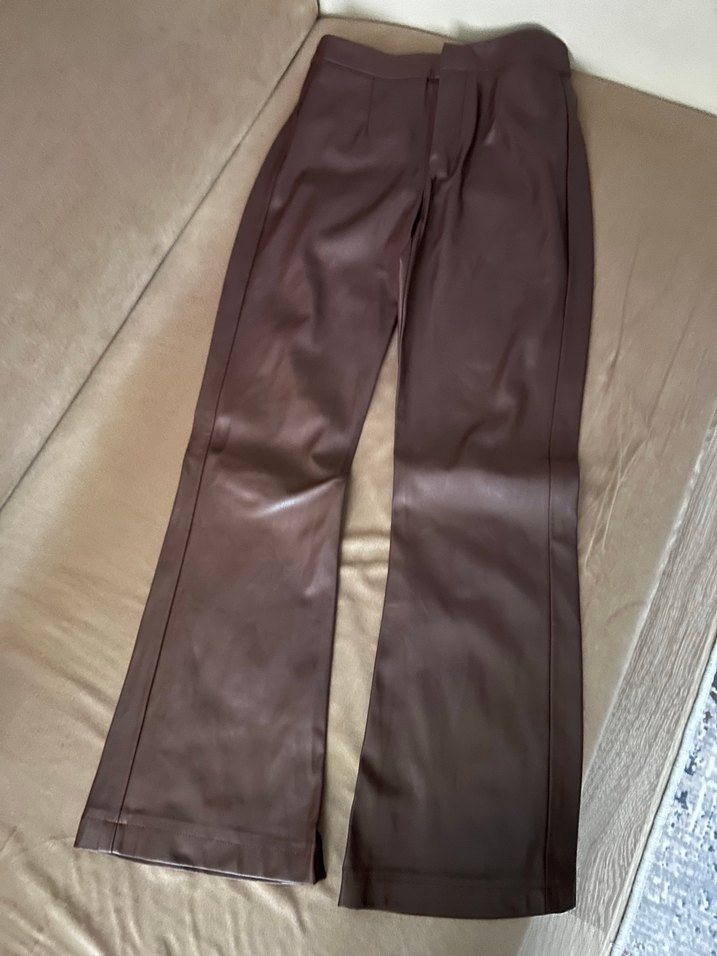 Kahverengi deri, regular fit pantolon, minimalist ve şık sokak stili için uygundur. Sorunsuz ve tertemiz bir kere giyildi duruşunu fotoğraflara ekledim. Son fiyattır