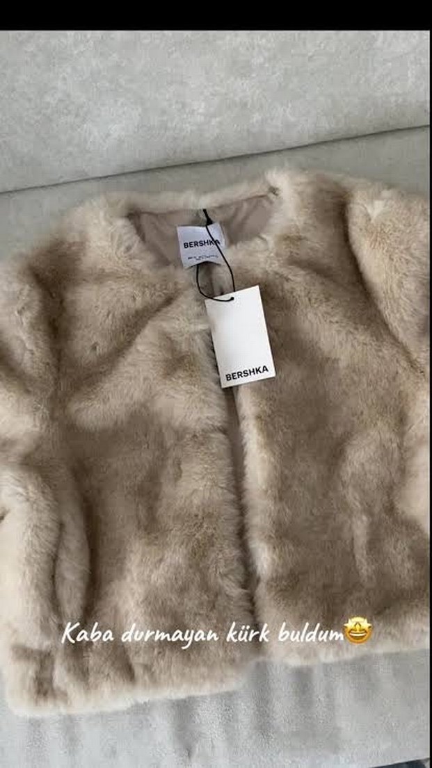 Bershka markalı, yumuşak suni kürk detaylı, bol kesim kürk defosu yok s bedene de rahatça olur
