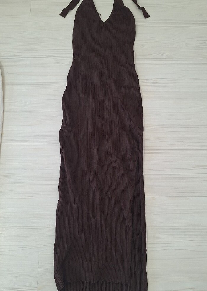 Bershka kahverengi uzun elbise