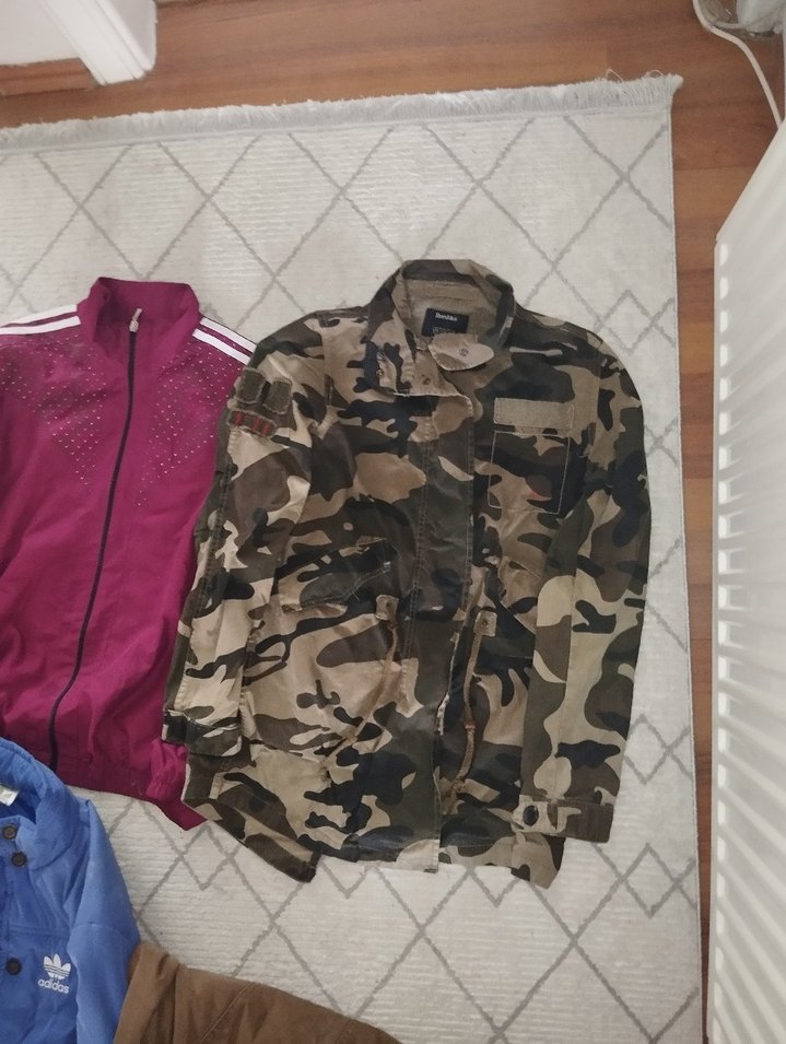 Bershka Kamuflaj Düğmeli Midi Ceket