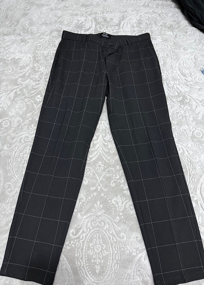 Bershka Kareli Erkek Kumaş Pantolon Siyah