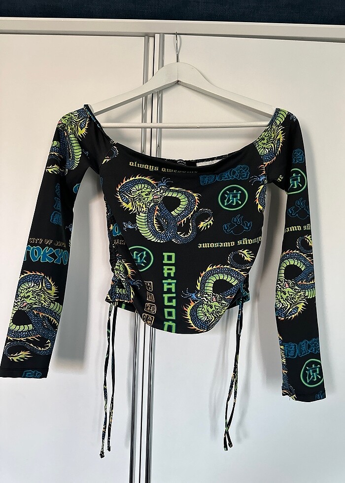 Çok iyi durumda sadece 1 kez giydim. Beyaz pantolonla çok iyi kombin oluyor. Dar ve üste yapışan bir modeli var. Yanlarındaki ipler yukarıya doğru büzülüyor.