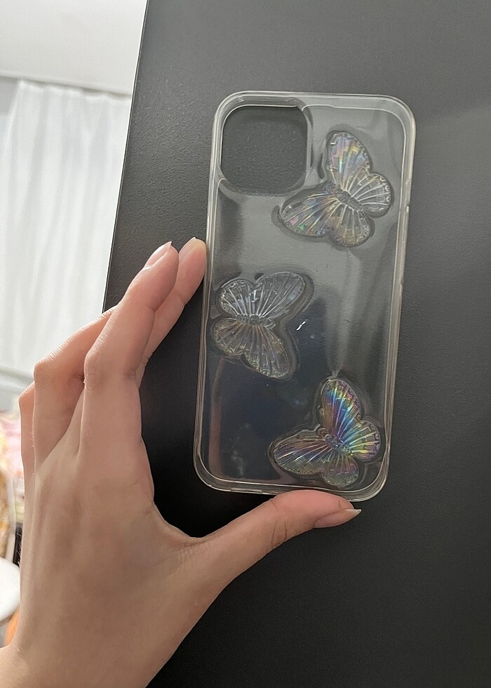 bershka kelebekli holografik telefon kılıfı iph 13/13 pro uyumlu