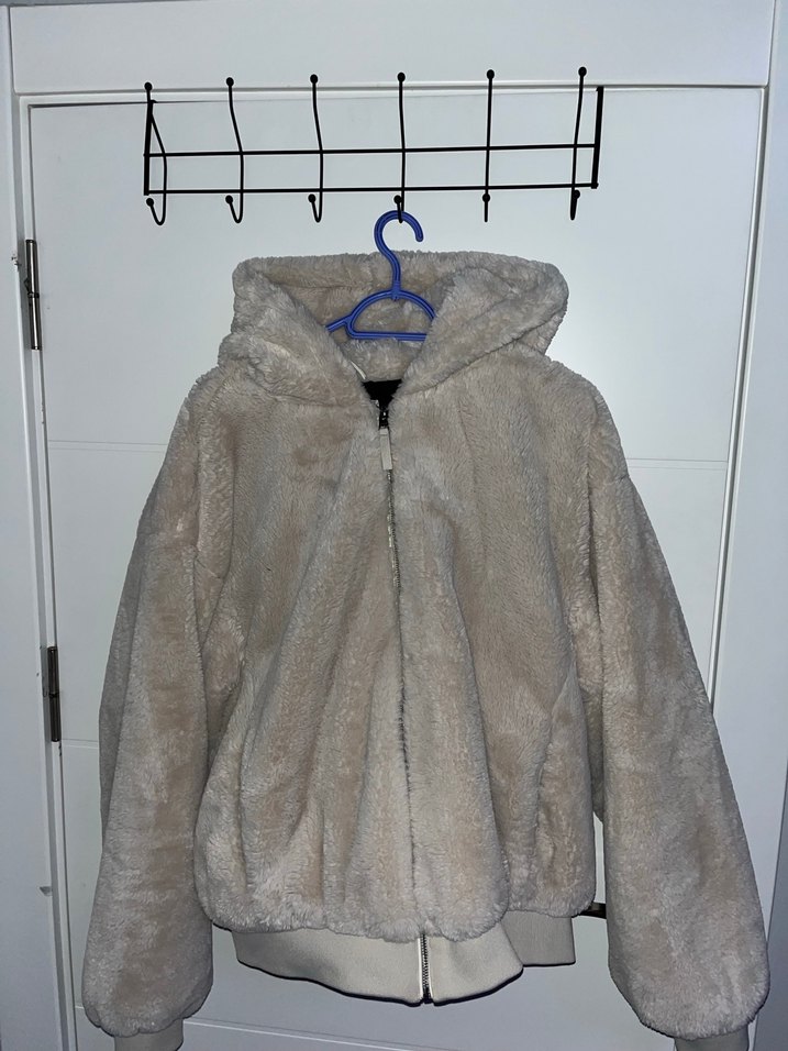 Kırık Beyaz kapüşonlu, peluş kumaştan yapılmış, kadın-erkek için ceket. Gevşek kesimi ve uzun kolları ile günlük kullanıma uygun. L beden. Çok az kullanıldı. Bershka marka. Sadece Ankara içi teslim. Yazıp ulaşabilirsiniz.