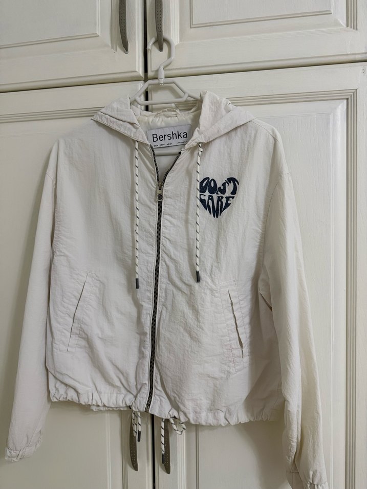 Bershka krem kapüşonlu ceket. M beden. Leke yırtık yok. Baharlık ince bir ceket isteyenlere ideal.