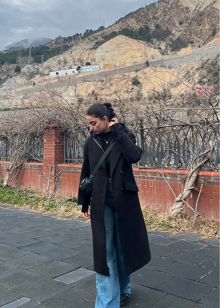 Bershka Kruvaze Çift Düğmeli Uzun Kaban