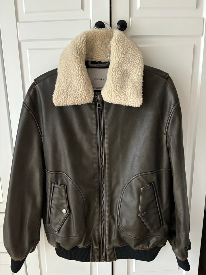 Bershka Kürk Detaylı Kahverengi Deri Kadın Ceket