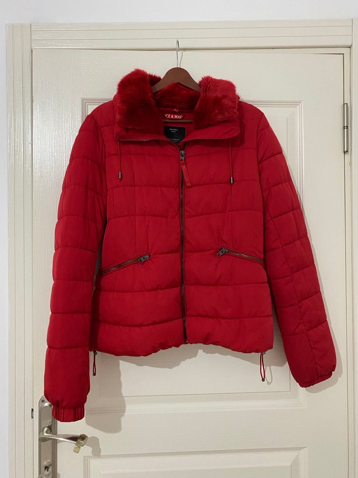 Bershka Kürk Detaylı Kırmızı Kadın Kışlık Mont