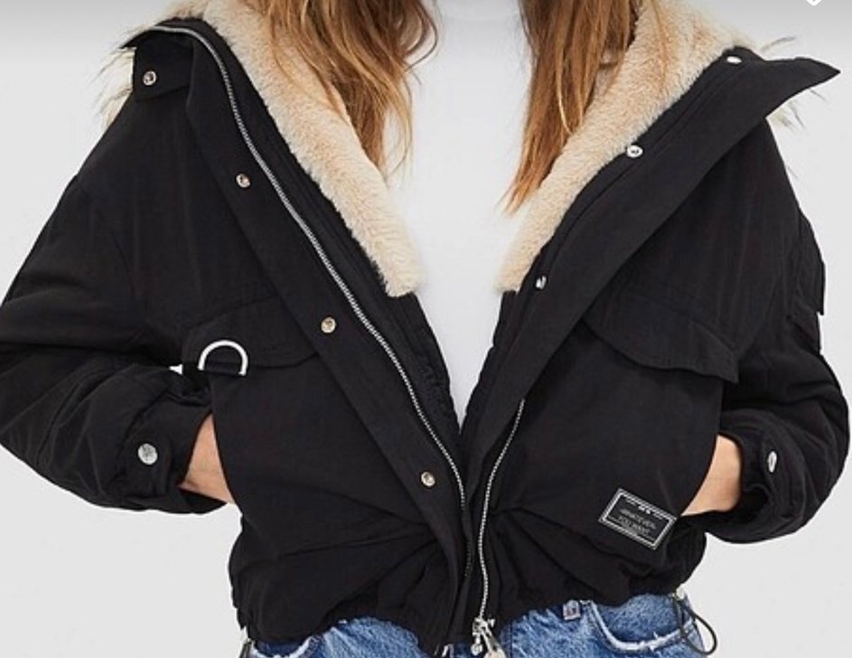 Siyah kadın ceketi, yaka detaylı ve uzun kolludur. Rahat, midi boy ve kürklü iç yüzeyiyle sıcak tutar, günlük sokak stili için uygundur.