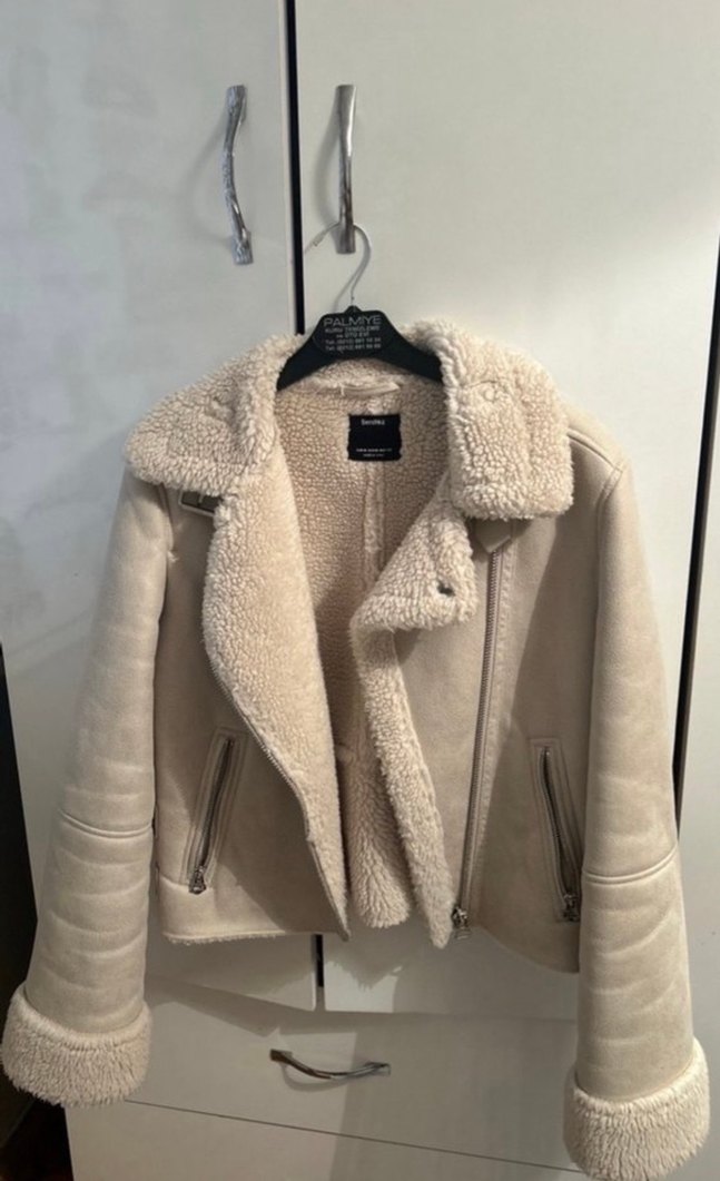BERSHKA Kürklü Süet Kısa Bej Kadın Ceket