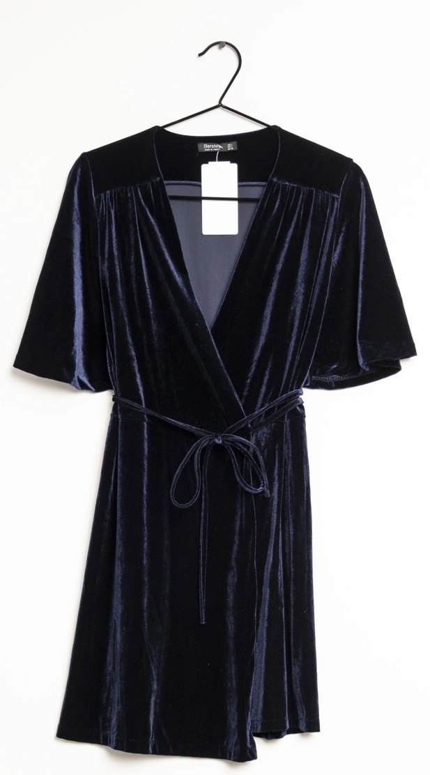 Bershka Lacivert V Yakalı Mini Kadife Elbise