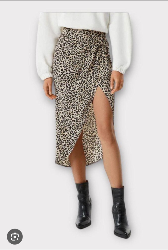leopar desenli, hafif yumuşak dokulu sentetik kumaştan bol kesim midi etek. Günlük sokak stili için uygundur. herhangi bir kusuru yok