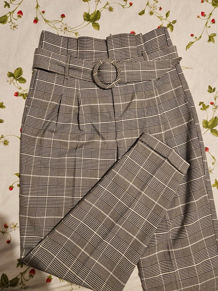 Bershka M Beden Kemerli Gri Ekose Kadın Kumaş Pantolon