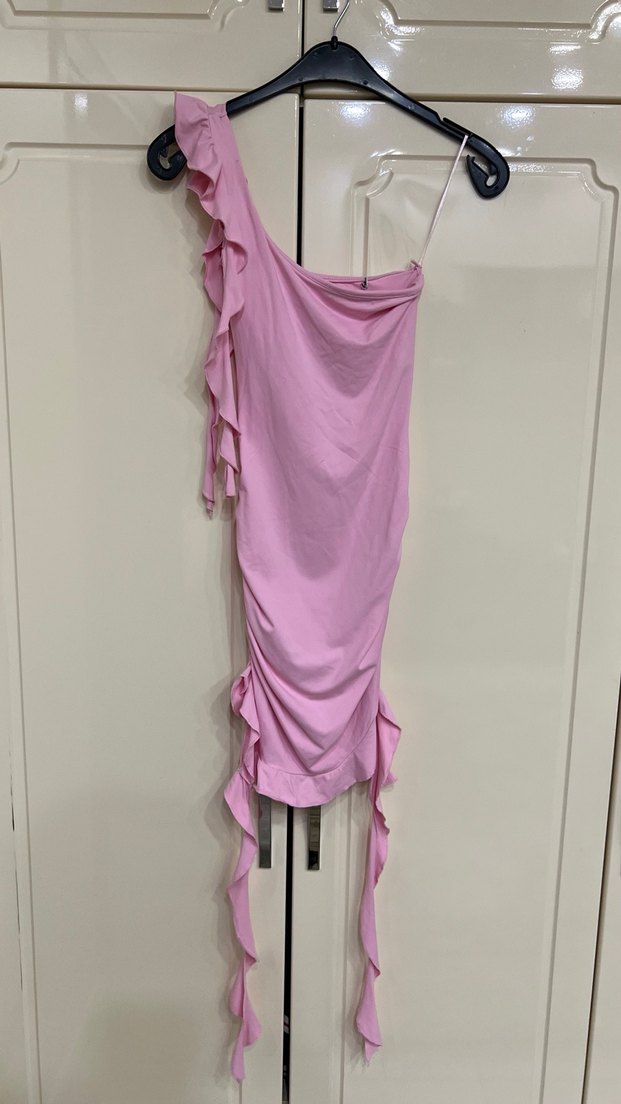Bershka marka Pembe Drapeli Straplez Midi Elbise