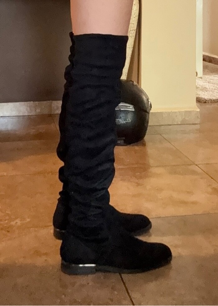 Çizmeyi artık giymediğim için satıyorum. Diz üstü ve alta toplayarak kullanılabilir. Çorap model olduğu için kolay şekil alıyor. Ayakkabıda yürüme izi var. Kötü durmuyor.