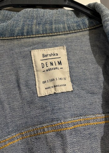 Bershka markasına ait mavi denim kumaştan yapılmış kadın kot ceket kısa boy S beden