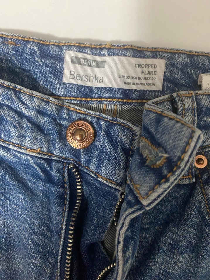 Bershka Mavi Düğmeli Crop Flare Jean
