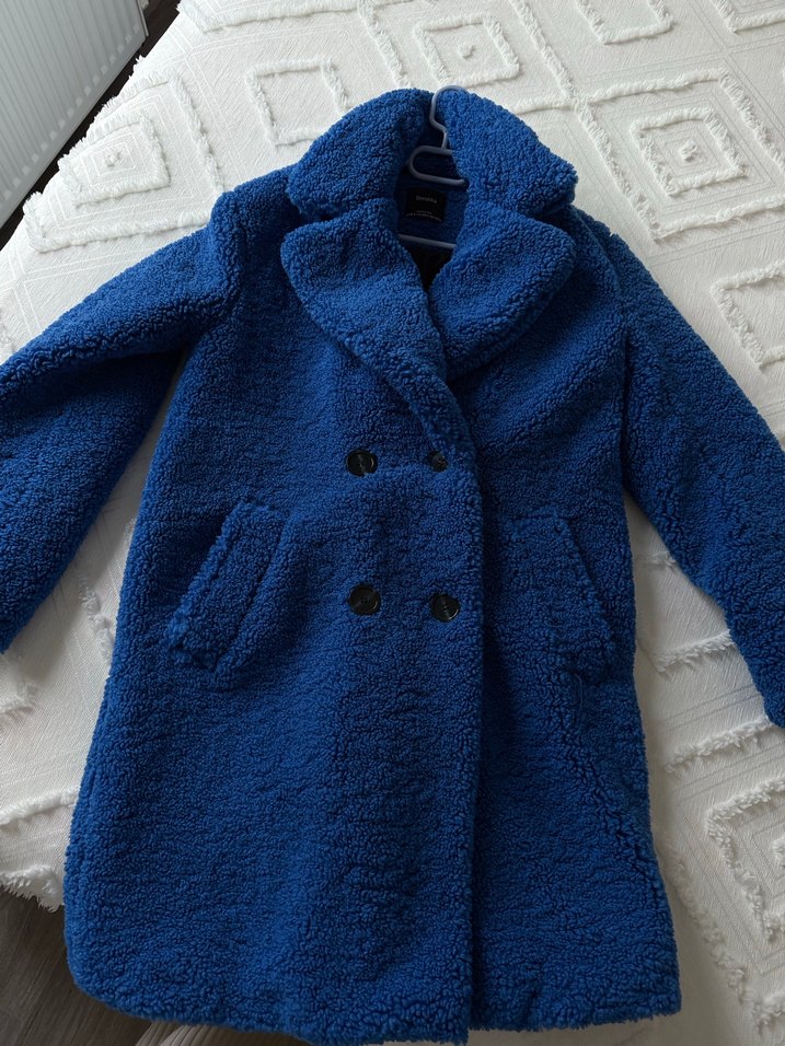 Bershka Mavi peluş kadın kaban
