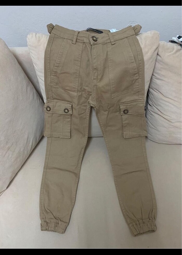 Marka temsili!! biraz likralı model hiç giyilmedi etiketi koparıldı paçası lastikli kargo pantolon. camel renk kargocu pantolon