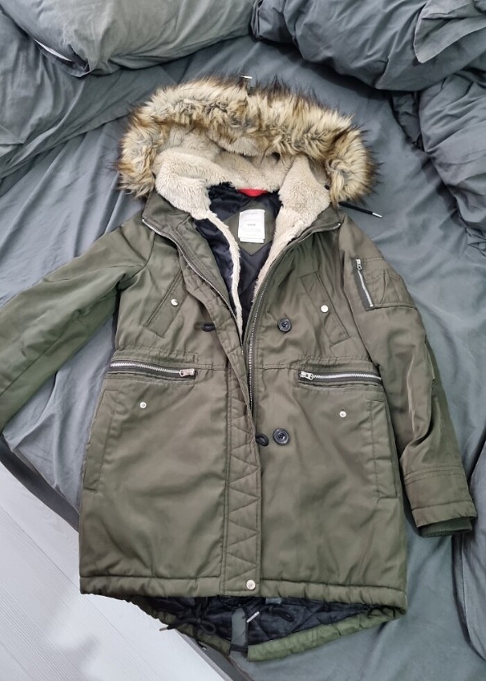 Ürün sağlam yırtık sökük vs yok. Görünen tüm kürklü kısımlar sökülebiliyor yağmurluk olarak kullanılabilir.