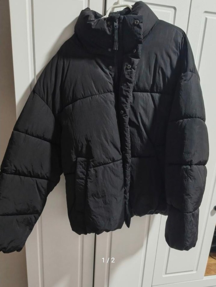 Düğmeli ve yüksek yakalı siyah kadın kışlık mont, uzun kollu ve fitted kesim. Yumuşak, deseniz fleece kumaştan, midi boyda, rahat sokak stili için uygun. ❄️ sıfır etıketlı gıyılmedı rahat ve bol unisex