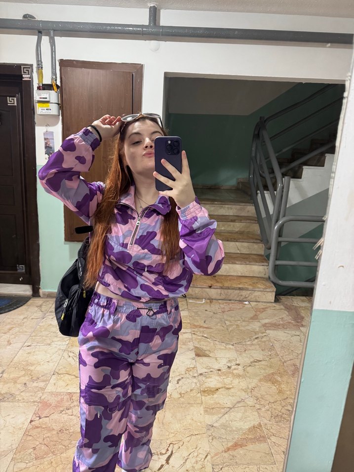 Bershka Mor Kamuflaj Desenli Sweat