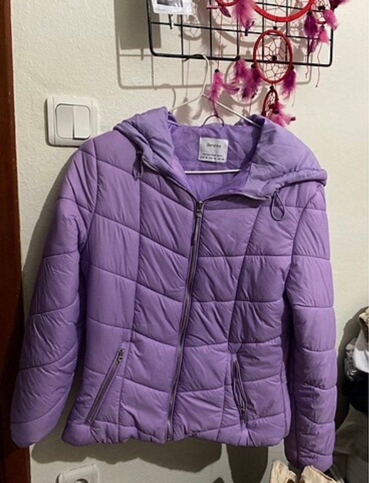 BERSHKA Mor Kapüşonlu Fermuarlı Kadın Mont
