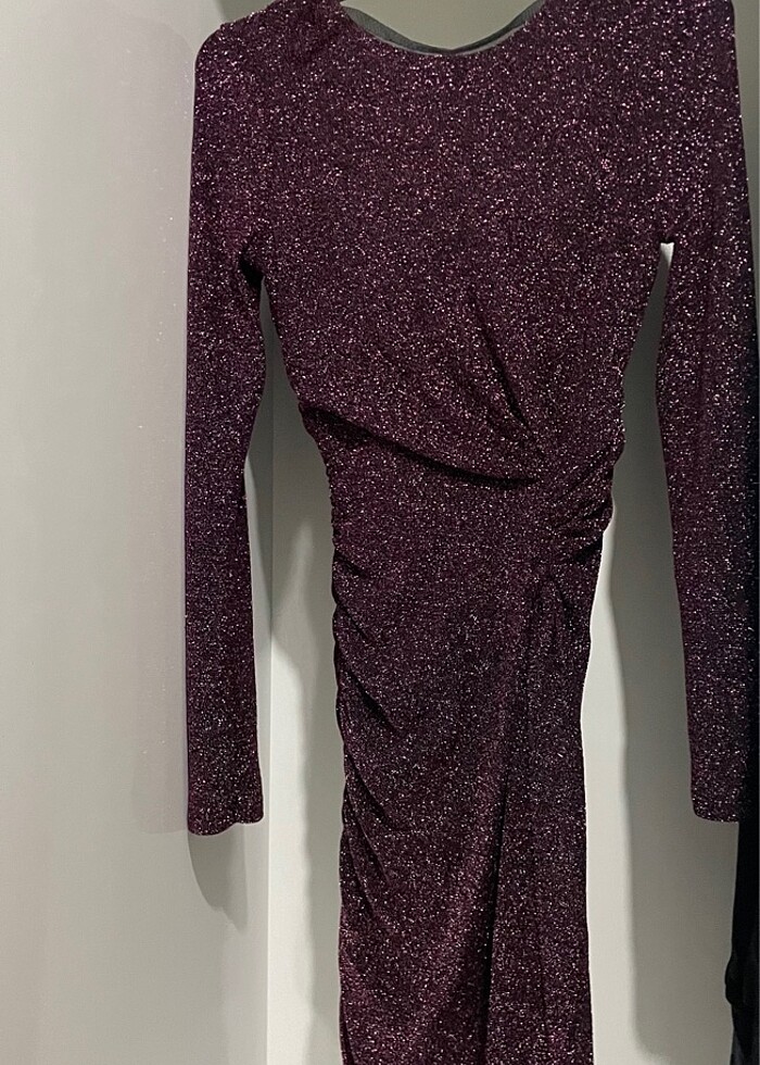 Sırtı tük detaylı, beli kuşak detaylı. Bel yan tarafı büzgülü ve vücudu likrası ile sarar. Çok sexy duran bir elbise topuklu ile. Davet, nişan, mezuniyet ve geceye uygundur