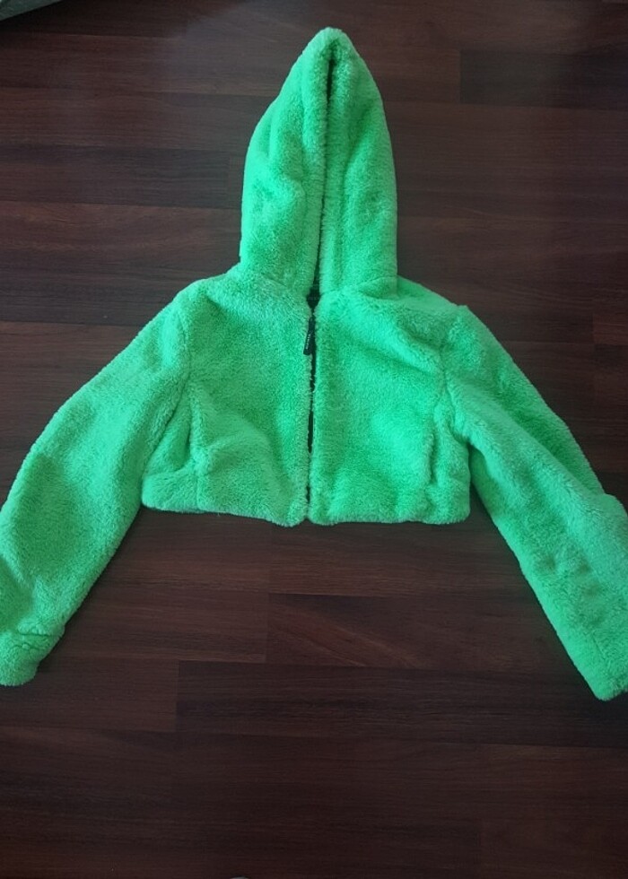 Bershka neon fıstık yesili peluş bedeni XS ama genis kalıp,38 be