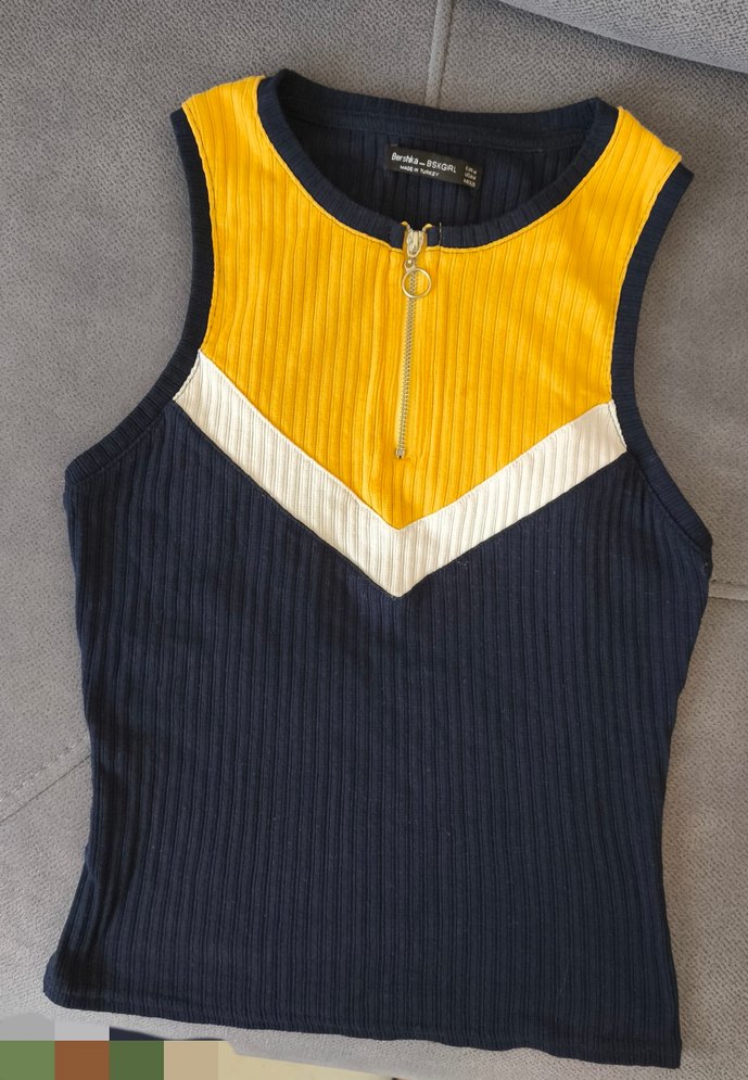 Bershka marka m beden lacivert önden fermuarlı, kolsuz bayan bluz. birkaç kez giyilmiştir. ihtiyaç fazlası olduğu için satıyorum.