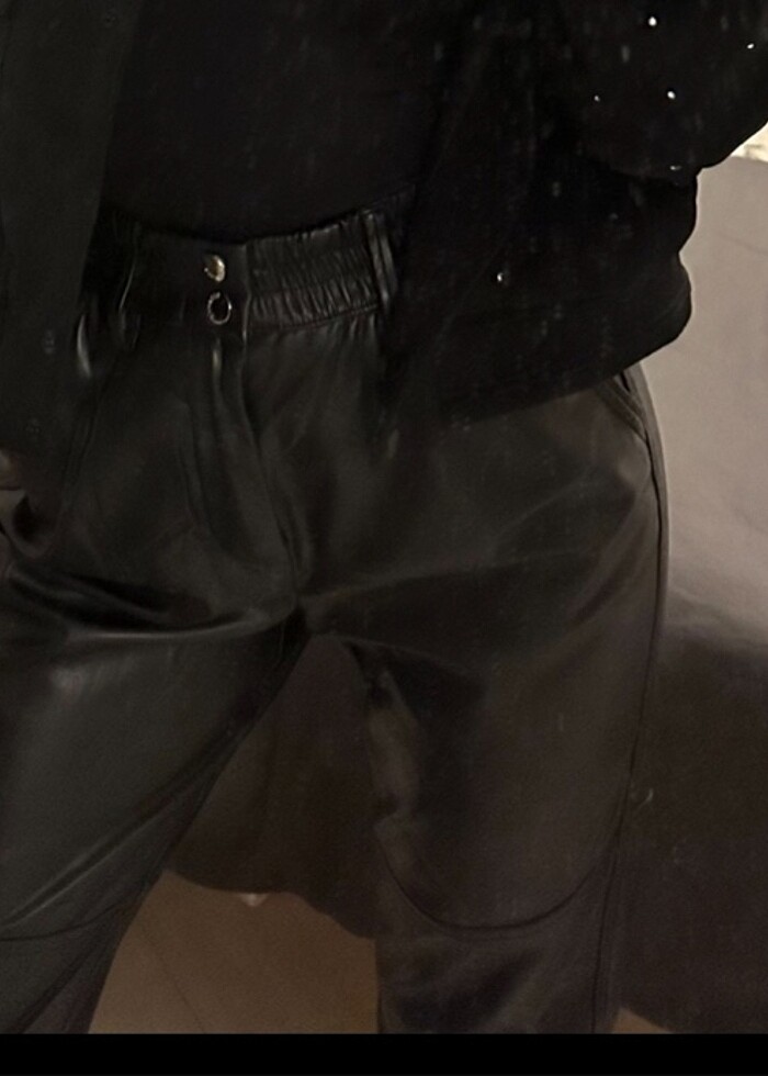 Bershka paçası lastikli deri pantolon
