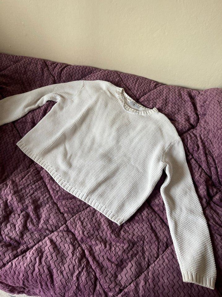 Bershka pamuklu beyaz kazak. Üzerinde bi lekesi var yıkanırsa çıkabilir.