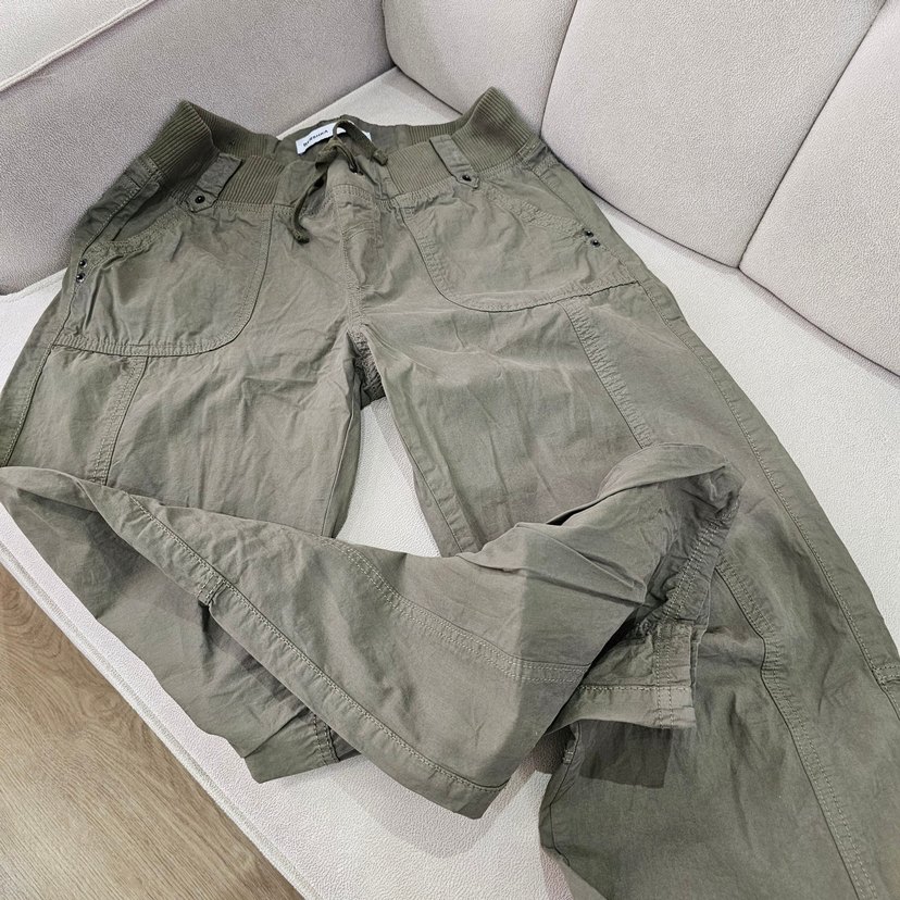 Kadınlar için kemerli, keten kumaştan, bol kesim ve midi boyda khaki renk pantolon. Rahat ve sokak stiline uygun outdoor kullanıma ideal.