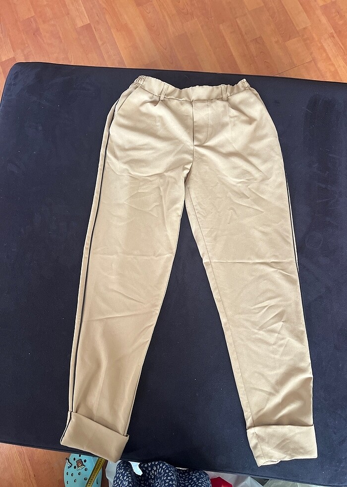 Beli lastikli çok rahat bir kumaş ve pantolon. Duble paça