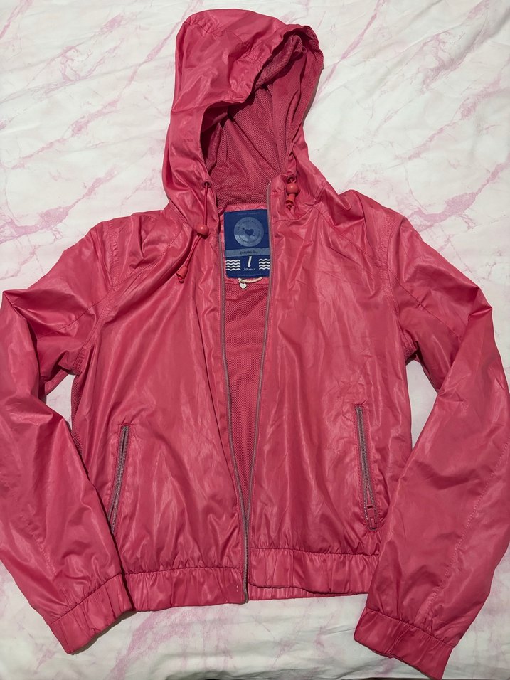Parlak pembe renkte, fermuarlı ve uzun kollu kadın ceket. Çok az kullanıldı