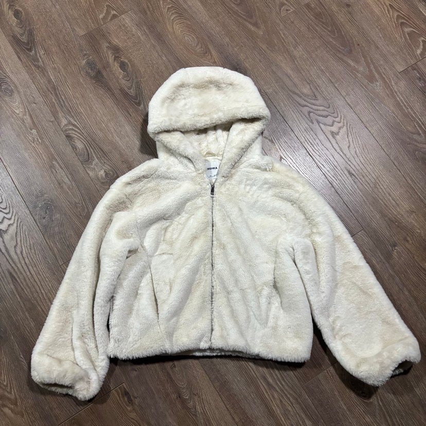 Kapüşonlu Beyaz Kadın Peluş Ceket L beden teklife açıktır
