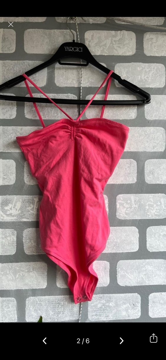 Pembe renkli, ince askılı ve göğüs kısmında büzgü detayı bulunan, kısa ve vücuda oturan Sportif ve sokak stili için uygun, canlı ve cesur bir tasarım.