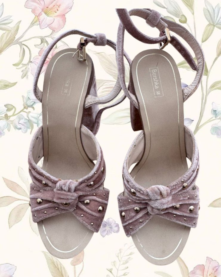 Bershka Pembe Nakışlı Süet Platform Topuklu Kadın Sandalet