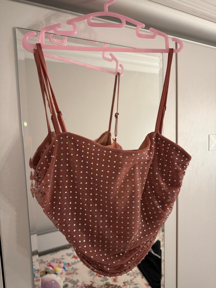 Ayarlanabilir askılı, pembe, taşlı, S beden Bershka top.